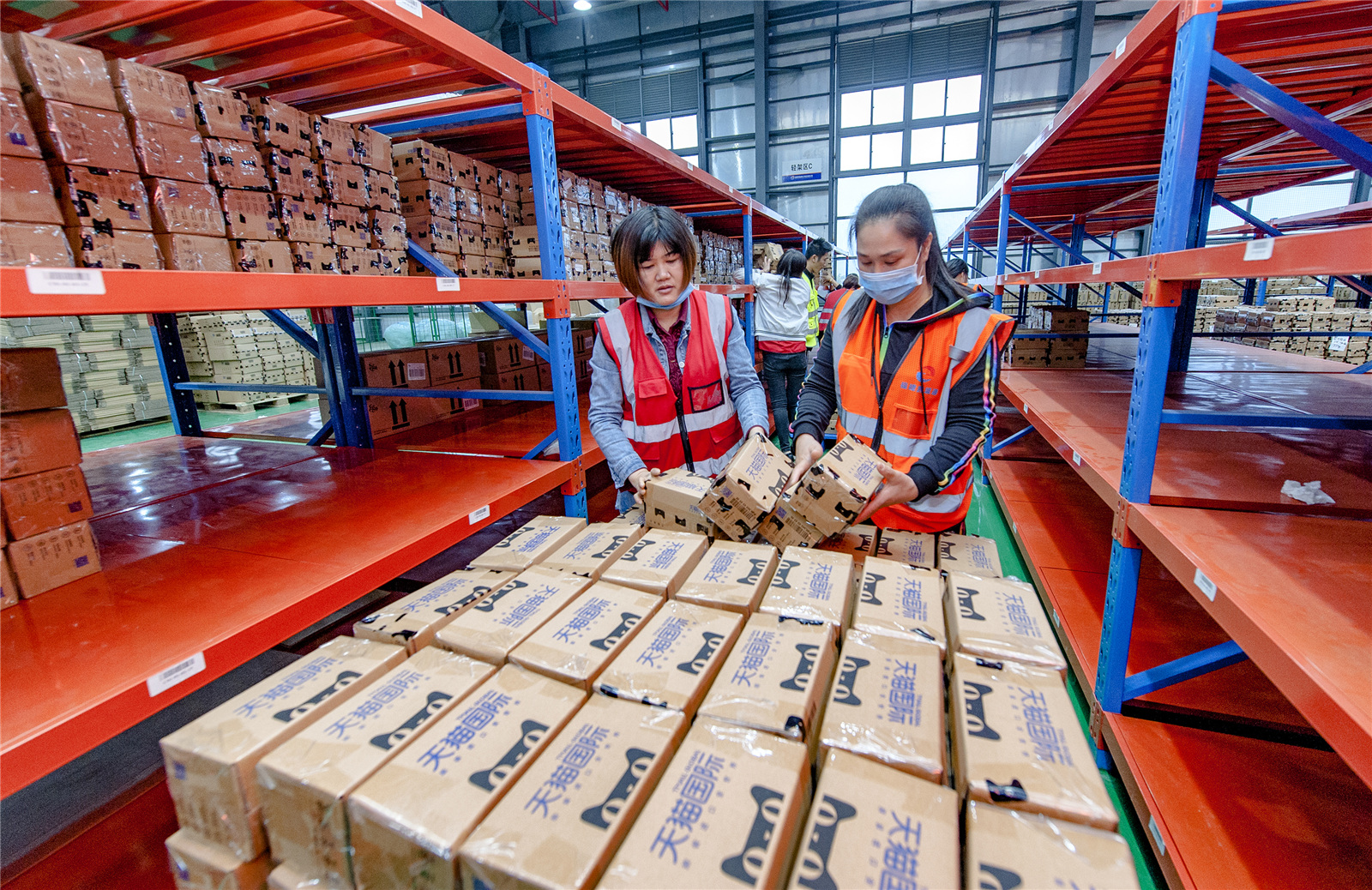 工作人员在福建平潭保税区整理货物。(供图)