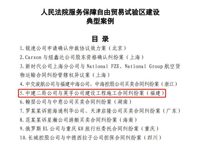 福州中院涉自贸区典型案例及经验做法入选最高人民法院“人民法院服务保障自由贸易试验区建设典型案例及亮点举措”