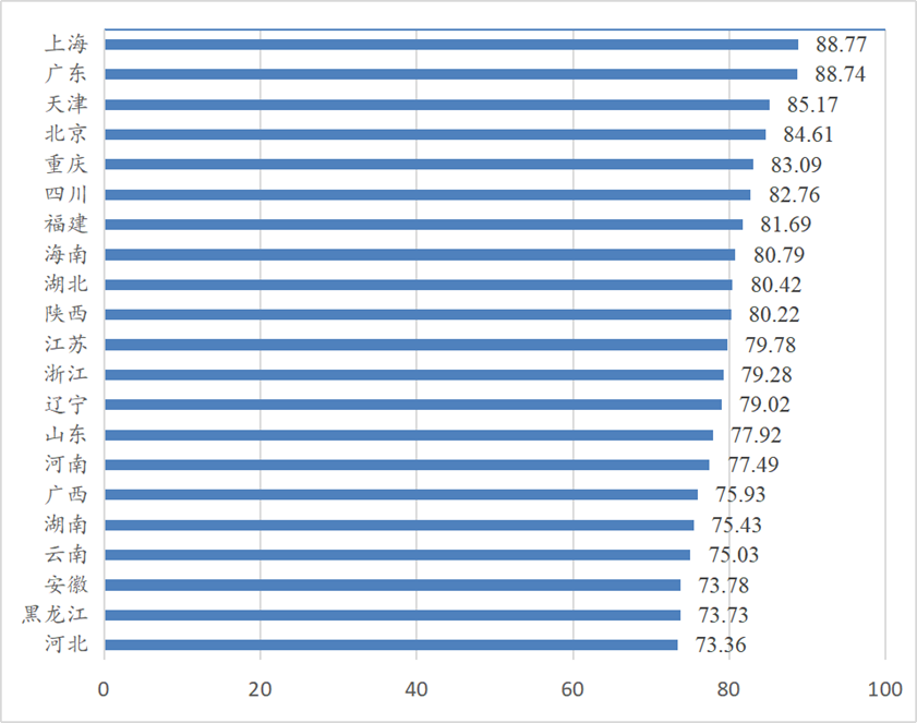 2022-2023年度中国自由贸易试验区制度创新指数(省级排名)。(中山大学自贸区综合研究院供图)