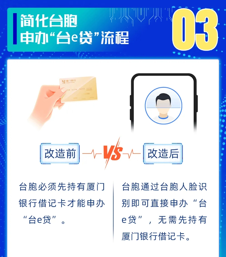 近日,厦门银行进一步拓展台胞人脸线上应用场景,实现台胞人脸应用于银行卡换卡线上激活、睡眠户线上激活、台胞线上申办贷款等多个场景,优化账户服务和业务流程,为台胞台企提供更优质的金融服务。