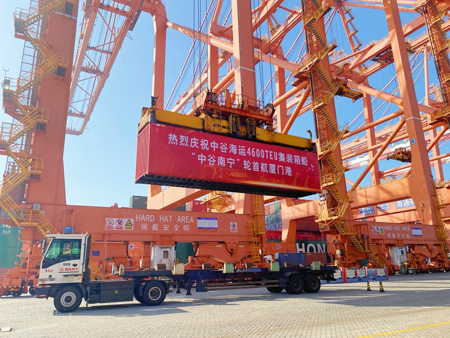 “中谷南宁”轮投入运营,刷新厦门港内贸最大单船吨位。厦门港口管理局供图