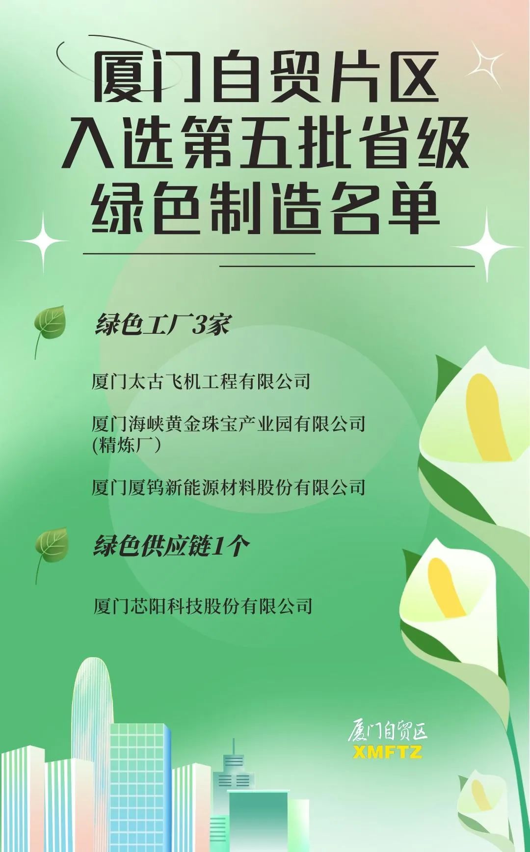 第五批省级绿色制造名单公布!厦门自贸片区4家企业获评!