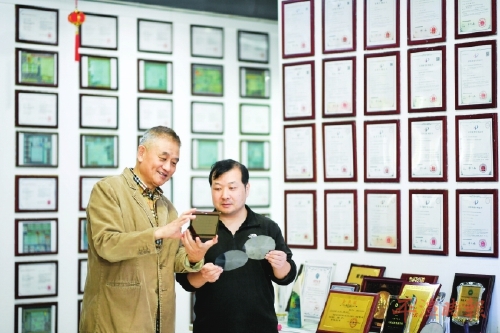 陈孟邦(左)在介绍公司的芯片。(资料图)