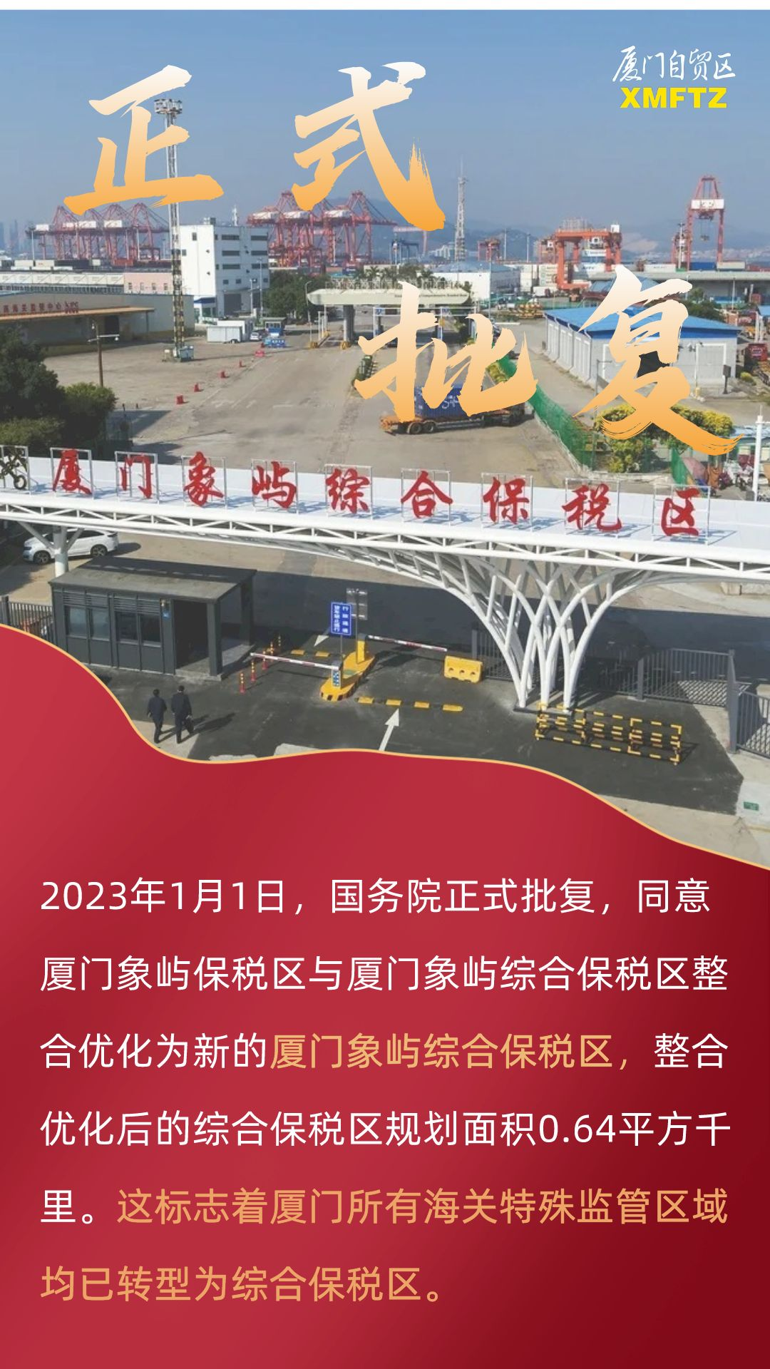国务院正式批复!厦门象屿保税区转型升级为综保区