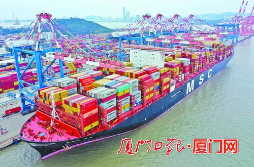 厦门港春节生产火热 迎来全球最大集装箱船舶之一
