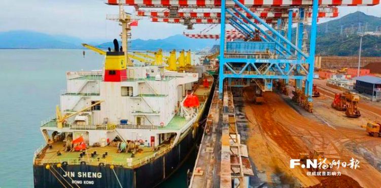 5万吨级镍矿“金盛”轮在福州港开展接卸作业。(福州港务集团供图)