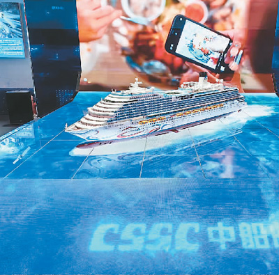本届进博会国家综合展的中国馆以“自贸试验区建设十周年成就”为重点,全面展示自贸试验区的探索实践和建设成就。图为中国馆展出的国产首艘大型邮轮爱达·魔都号模型。汪文正摄