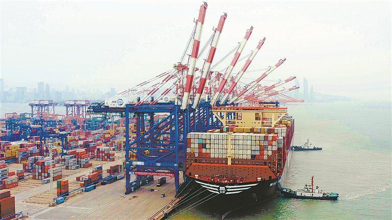 执行远洋干线的巨轮频现,凸显厦门港在全球航运节点中的重要地位,全球集装箱在此交汇,促进厦门与世界经济体系深度融合。