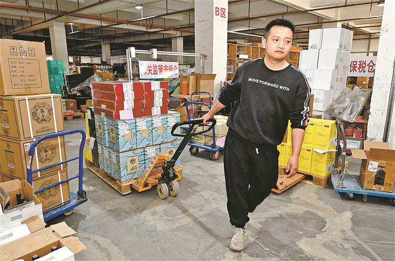 正月初七的象屿保税区进口酒仓储中心依然是平时的工作节奏。记者走进厦门一动酒业集团有限公司的海关监管保税仓和非保仓,满眼望去,是堆放整齐的一箱箱酒。数名工人正忙着给一批进口起泡酒贴上中文标志。