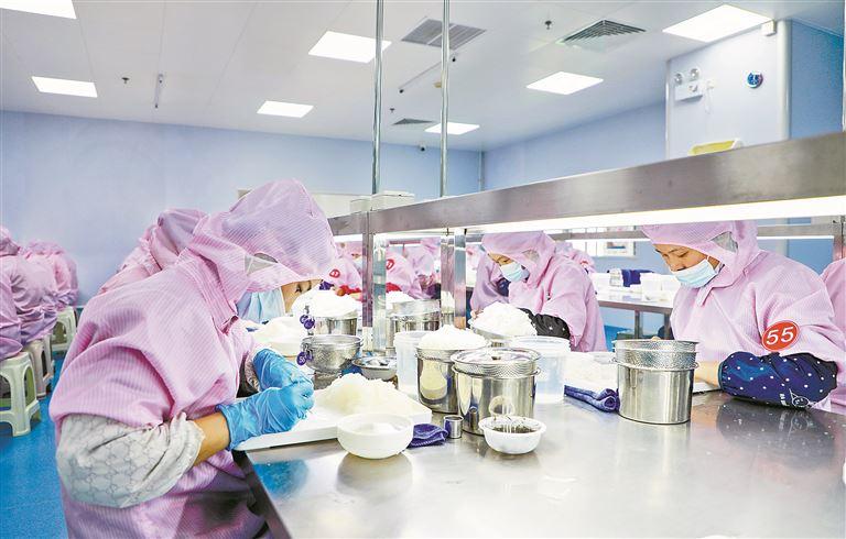 燕窝平台是厦门自贸片区打造的重点平台之一。图为工人在挑选毛燕。