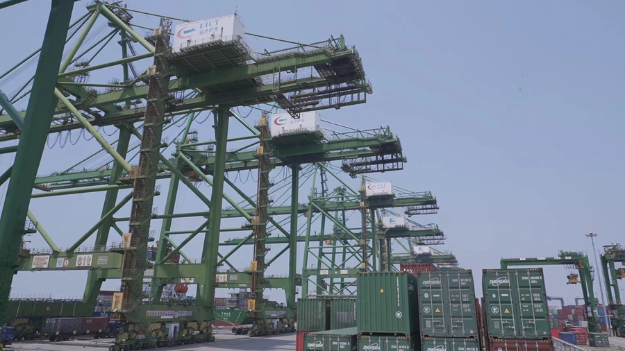 福州港江阴港区集装箱装卸作业现场。