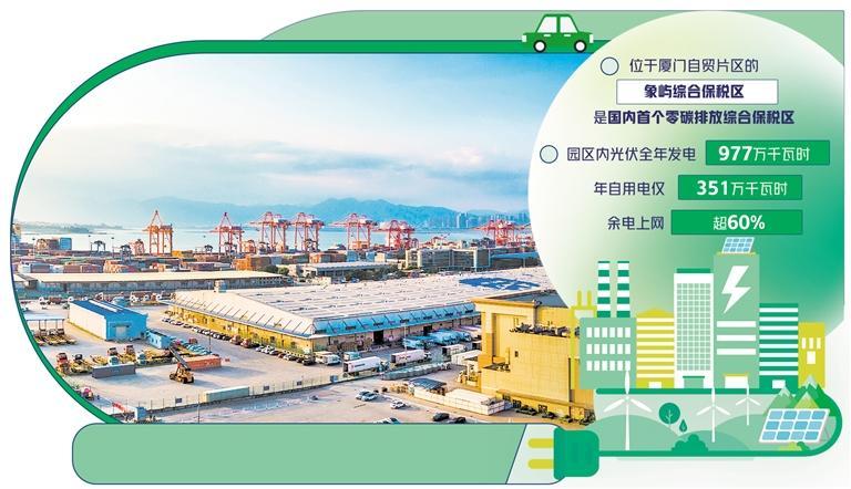 党的二十届三中全会提出,必须完善生态文明制度体系,协同推进降碳、减污、扩绿、增长,积极应对气候变化。福建自贸试验区厦门片区(以下简称“厦门自贸片区”)积极开展生态文明领域政策创新和实践,探索推动自贸试验区实现绿色低碳发展。特别是在厦门市生态环境局的支持下,推动厦门港务物流有限公司将象屿综合保税区打造为全国首个实现零碳排放的综合保税区,探索出一条节能、降碳、减污、增效的高质量发展之路。
