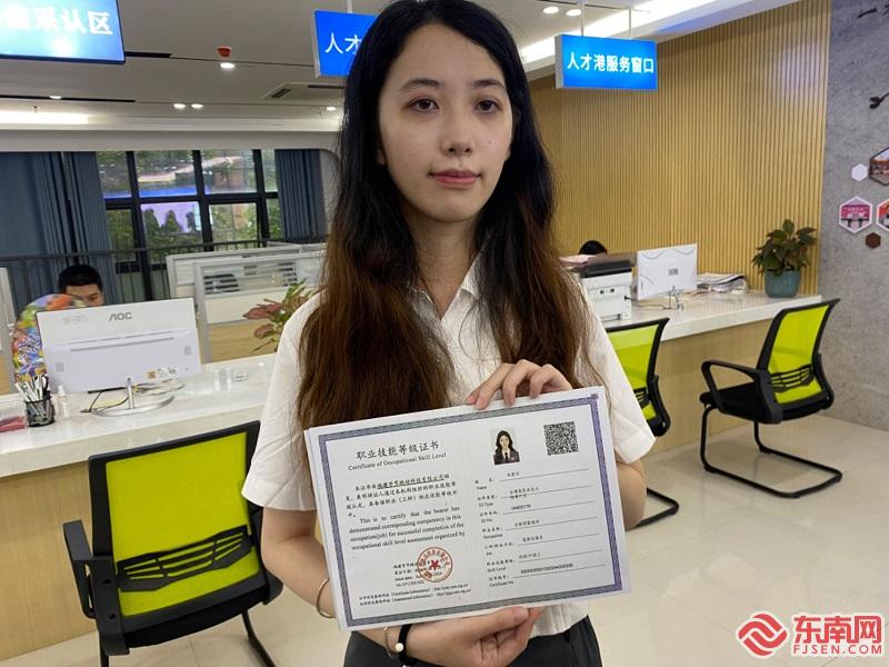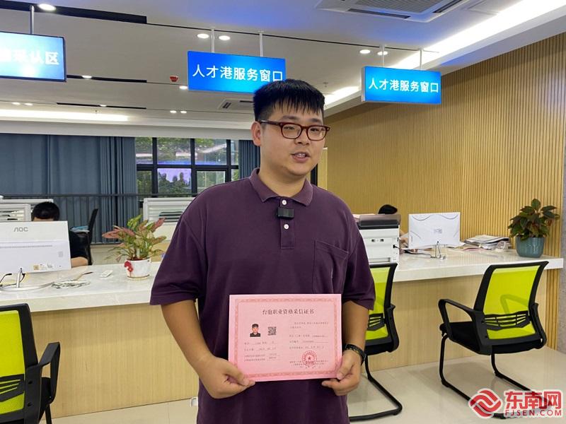 25日下午,台青朱女士在中心领取了互联网营销师职业技能等级证书,记者在证书上看到,工种为视频创维员,等级为四级/中级工。“有了这本证,将对我未来的职业规划带来帮助。”朱女士去年毕业于广东暨南大学新闻学专业,她表示,互联网营销在大陆有很大的前景,目前她也在从事互联网相关岗位的工作,今年5月份她在平潭参加了互联网营销师的培训,“平潭有专门针对台胞的培训,还提供了办证的服务,很便利。”朱女士说。