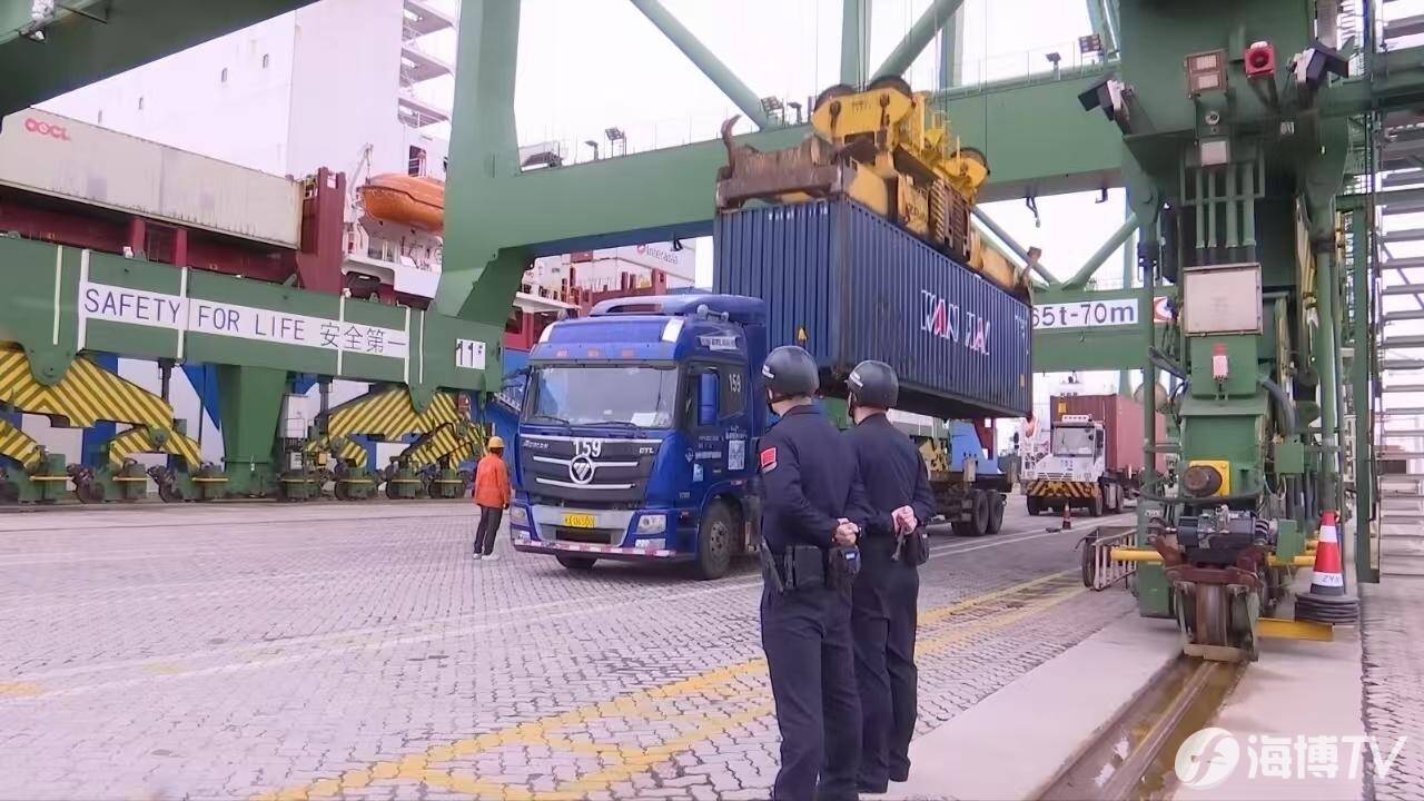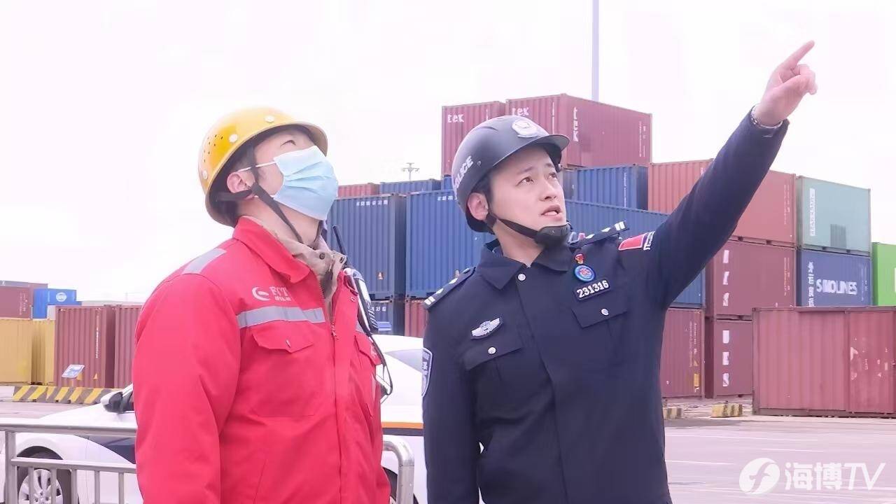 图为福清边检站民警正在监护现场装卸秩序