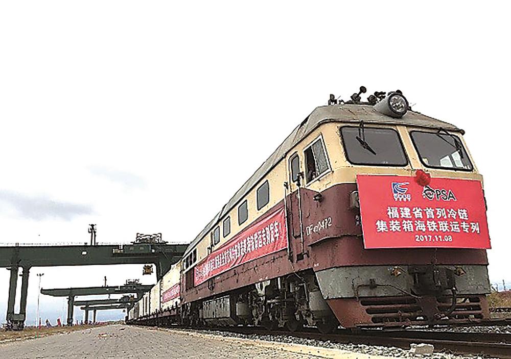 2017年11月8日,福建省首列冷链集装箱海铁联运专列发车。(福州自贸片区供图)