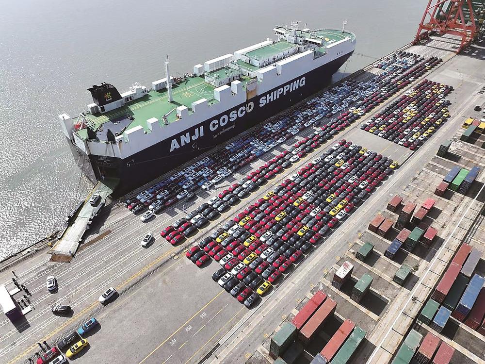 2023年1月26日,福州港江阴港区启动外贸汽车滚装出口新业务,首单业务量为1100辆外贸汽车。(福州自贸片区供图)