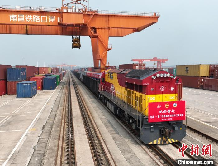 4月29日上午,一列从福建厦门港驶来的铁海联运班列满载塑料粒、板材等货物稳稳停靠在江西南昌县的南昌国际陆港,与此同时,另一列满载江西本土制造产品的班列鸣笛启程奔赴厦门港。自2023年开通以来,“南昌—厦门港”丝路海运班列已累计开行超1600列,已运输12.78万标箱货物,货物品类达200多个。该班列已形成常态化高效运转态势,构建起横跨赣闽的黄金物流通道。