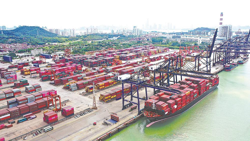 5月16日,满载机械设备、建材、鞋服的“以星康多尔”轮(ZIM CONDOR)从厦门港国际货柜码头启航(如图),标志着福建省首条直航厄瓜多尔的ZAT航线(以星南美西航线)正式开通。该航线的开通不仅是厦门港优化营商环境、服务“一带一路”倡议的重要举措,也是落实第三届中拉合作论坛成果、深化中拉经贸合作的具体实践。